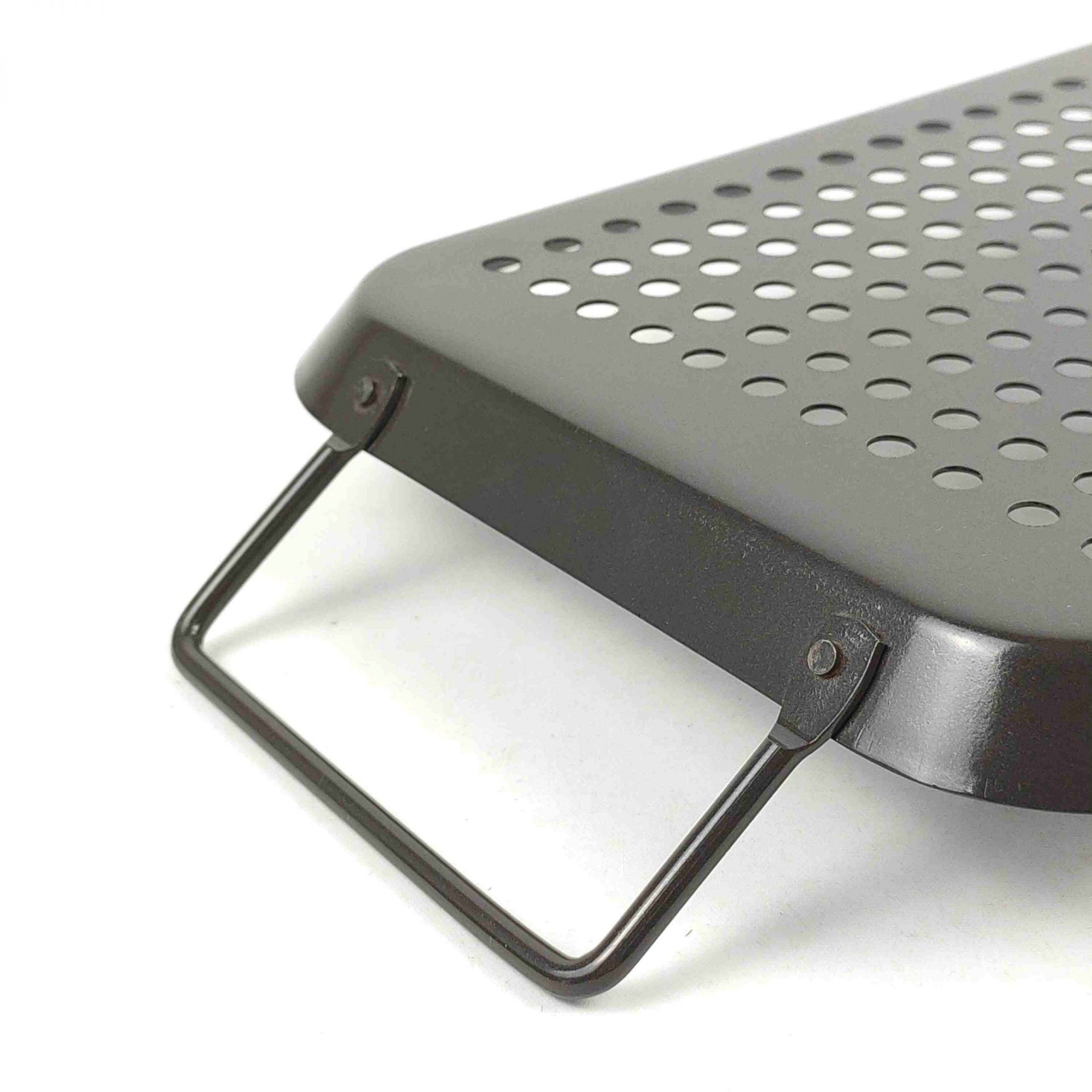 -Rectangle shape grill topper features round perforations allowing smoke and heat to circulate in the pan, assuring you of quick, even cooking on every item, especially for small foods like onions, peppers, mushrooms and shrimp.
