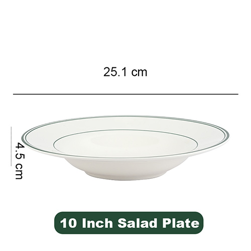 The ceramic charger plates for restaurant are microwave safe, dishwasher safe, with green lines, fashion and beautiful.