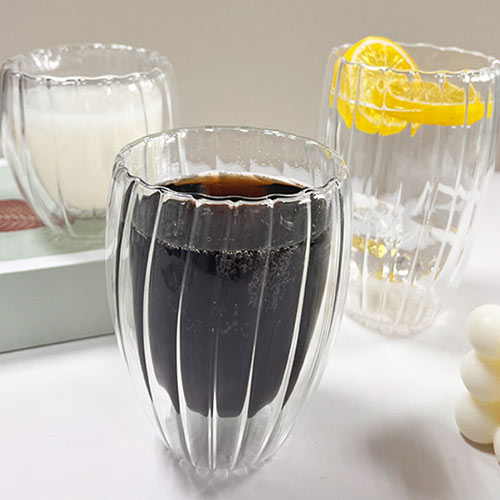 The vertical strip double-wall glass is made of high borosilicate glass, with excellent heat and cold resistance. Wholesale only. MOQ 1000pcs.